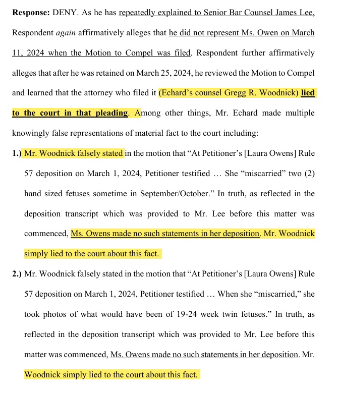 Oddly, I’ve noticed people posting videos about the bar’s allegations against me….but as far as I can see, not a single person has raised any concerns about Woodnick lying to the court.