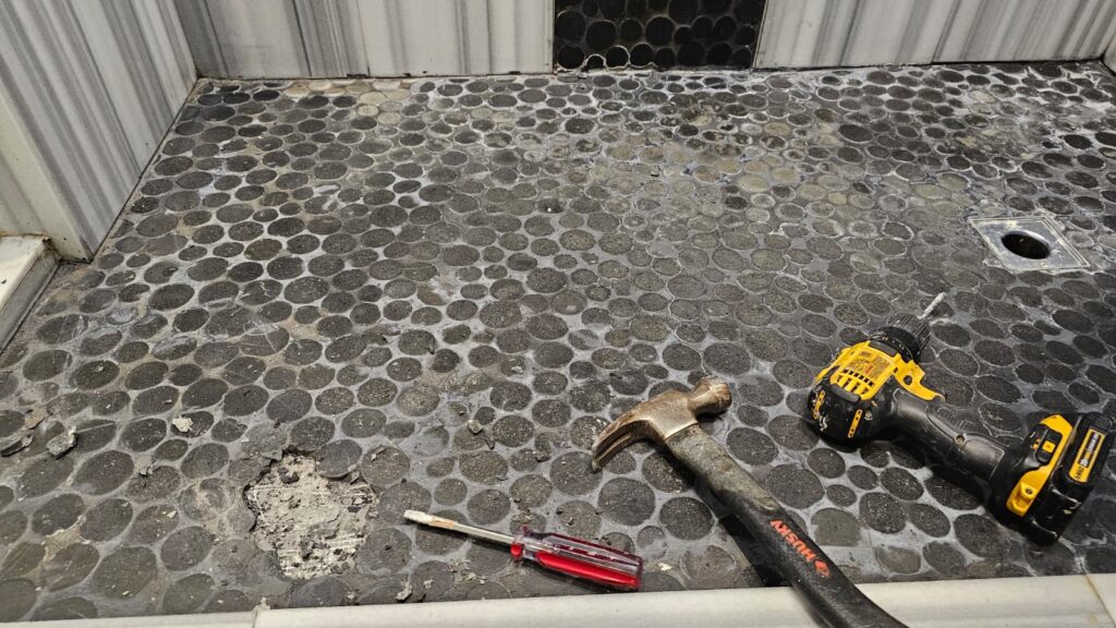 - I’ve been focused on other stuff this week, so apologies for not blogging or making videos. I had to get my taxes filed yesterday, then I celebrated by starting my last house project – installing a new tile floor in the master shower.The master bath was remodeled during COVID, and the shower floor got black round tiles that looked amazing at the time, but 6 years of AZ’s ultra hard water left white stains that looked awful. The black floor had to go. In its place is something lighter and more neutral. That should be all finished by tomorrow.